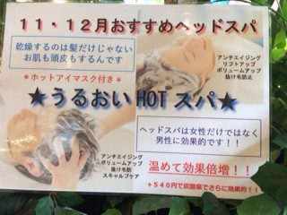 通常のヘッドスパにホットアイマスクをつけて施術させていただきます。